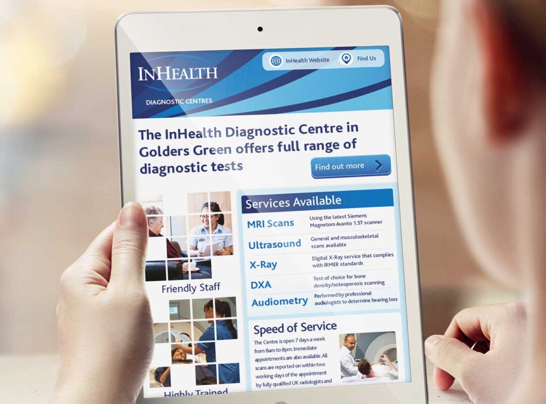 For more than 30 years, InHealth has been a trusted NHS partner by providing diagnostic and healthcare solutions. New guidelines and templates were developed with the marketing team to define their brand and style. The team assisted in creating digital and print creatives for campaigns across multiple media platforms.