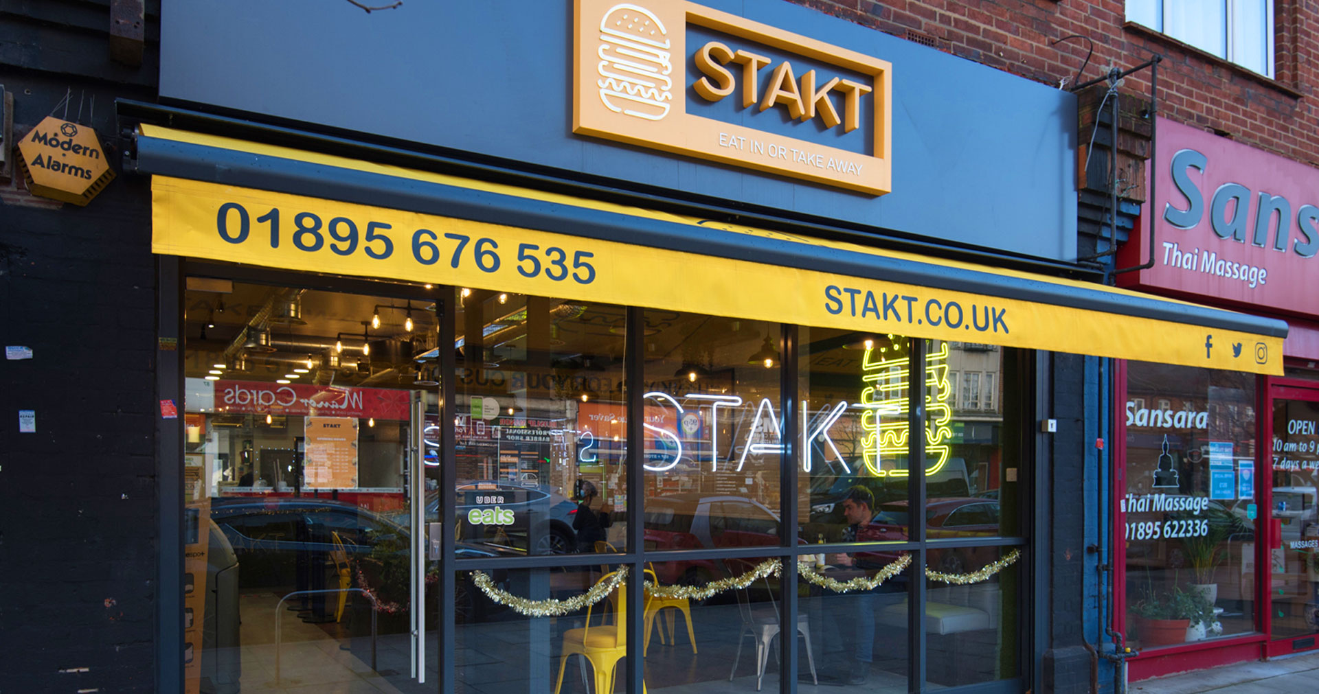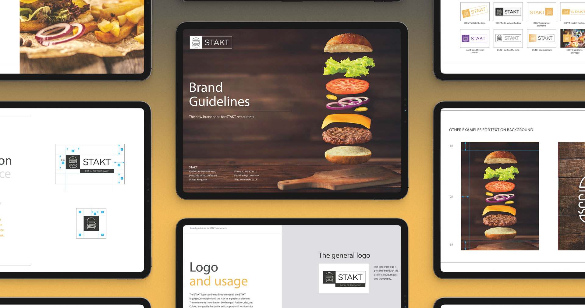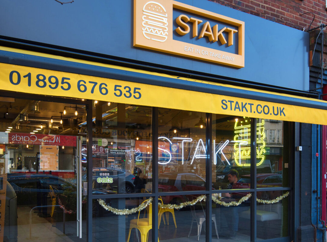 Initially, STAKT was a hamburger concept restaurant in London. In order to franchise his concept restaurant, the owner entrepreneur came to us for assistance. As well as naming, researching, and creating brand options, we developed the concept into a finished restaurant. From branding and guidelines to interiors, signage, and menus, we were responsible for overseeing all aspects of the project.