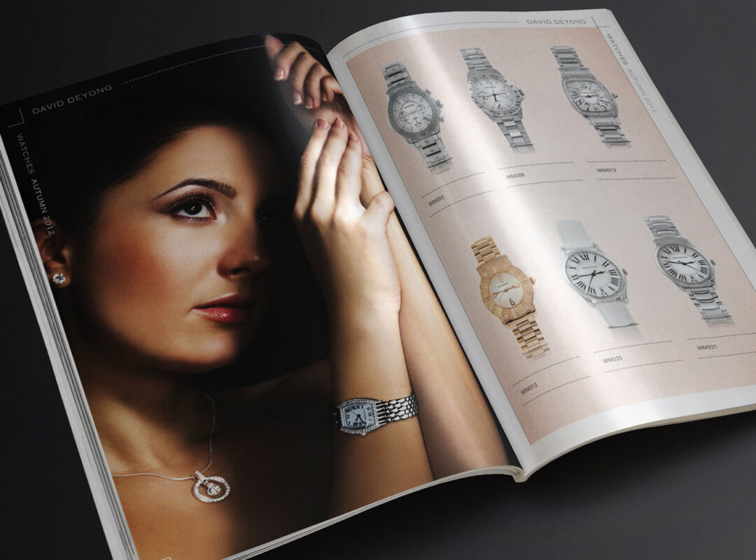 In conjunction with David De Yong, Sterling and Steel offers exquisitely crafted jewelry to suit all occasions. The brand’s jewelry collections blend timeless elegance and contemporary style. Developing Sterling and Steel and Diamond Dust brands for new jewelry lines for men and women was a key part of our creative expertise. Our services for this small start-up included brochures, catalogs, leaflets, and packaging, as well as point-of-sale displays.